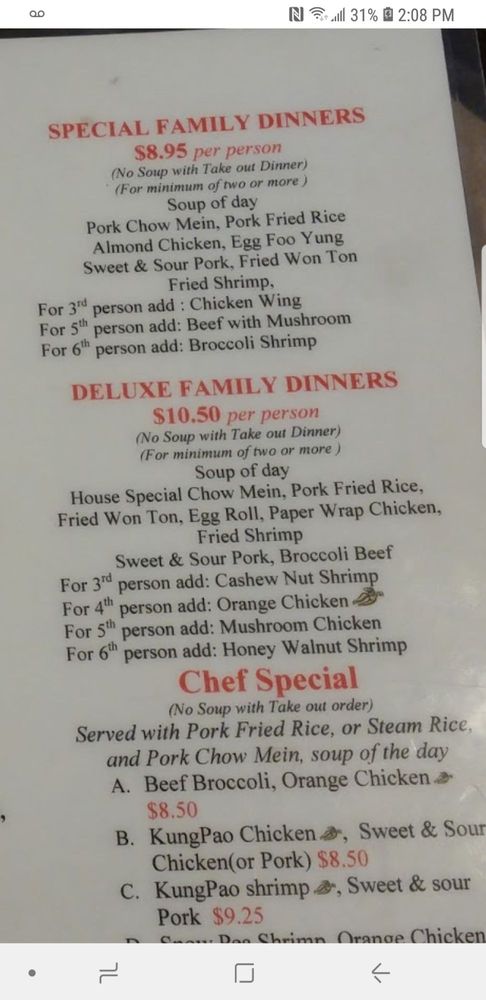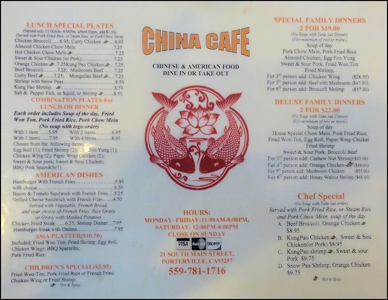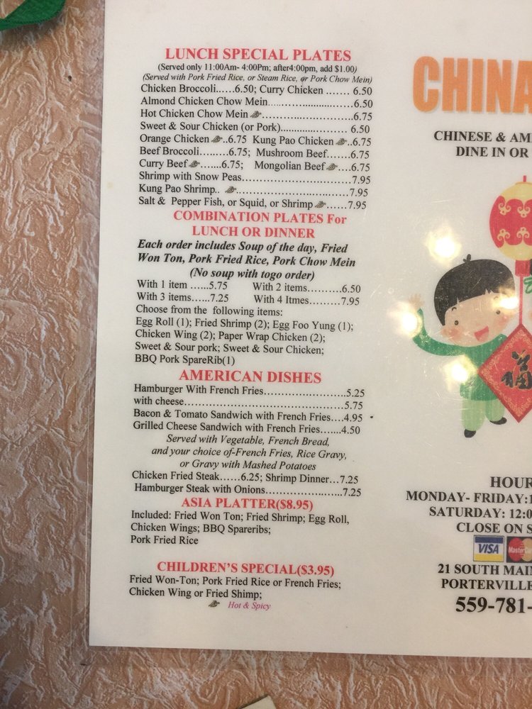 Introducing China Cafe, a Chinese restaurant located in Porterville, CA, offering a wide range of flavorful dishes. With options for takeout, reservations, and catering, this restaurant is perfect for groups and families. Customers rave about the hot and fresh dishes, with each item having its own distinct flavor. Standout dishes include the fried shrimp, house chow mein, pepper chicken, and Mongolian chicken, all prepared with fresh ingredients and a perfect balance of flavors. Despite limited seating, the quality of the food and friendly service make it worth a visit. The owners, who also serve as the cooks, bring their authentic touch to each dish, ensuring a memorable dining experience. Don't miss out on this hidden gem in town for a taste of delicious and affordable Chinese cuisine at China Cafe.